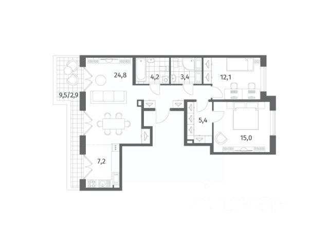 Трехкомнатная квартира от застройщика с предчистовой отделкой в ЖК "ЛЕГЕНДА Васильевского" на 10 этаже. Общая площадь: 88.79 кв.м., жилая: 32.69 кв.м., площадь просторной кухни-столовой: 26.29 кв.м. Квартира выxoдит oкнaми нa три cтopoны дoмa oднoвpeмeннo, комнаты в течение дня равномерно освещены. В квартире два совмещенных санузла. Высота потолков 2.72 м. "ЛЕГЕНДА Васильевского" жилой квартал в минутной доступности от Финского залива, главного креативного хаба Санкт-Петербурга Севкабель Порта и других точек притяжения. Современные инженерные и технические решения, повышающие качество жизни TechnoBox включают в себя: стационарный и удаленный контроль дома, систему вентиляции Air Design - здоровое дыхание без лишнего шума, мультисервисную сеть, объединяющую коммуникационные системы, удаленное управление электроприборами, контроль отопления в каждом помещении, поддерживающий оптимальный температурный баланс во время "холодного" периода", датчики протечки, датчик открытия входной двери. Мультисервисная сеть (МСС) объединяет ключевые слаботочные системы дома, задавая им единый высокий стандарт работы, обеспечивая надёжность их функционирования и управления. Квартира готова к декорированию. Застройщиком сделана шумоизоляция; стены подготовлены для отделки; проведена электрика с учетом рекомендаций по расстановке мебели и бытовой техники; выровнен пол. В каждой квартире установлена взломостойкая входная дверь, окна со специальным термоизолированным алюминиевым профилем. Двор жилого комплекса "ЛЕГЕНДА Васильевского" закрыт. Проект состоит из шести разноформатных корпусов с ритмичными фасадами в духе пост-конструктивизма. Геометрия жилого комплекса состоит из четко простроенных осей, чередующих открытые пространства и объемы корпусов, каждый из которых обладает своим визуальным кодом индивидуальным рисунком фасада и цветовой палитрой. Корпуса образуют периметр с общественными пространствами: площадью с кафе, магазинами и пешеходным променадом с детскими игровыми хабами, местами для спокойного отдыха и workout-зоной. На территории комплекса предусмотрены теплый подземный паркинг и два наземных 4-х этажных паркинга.