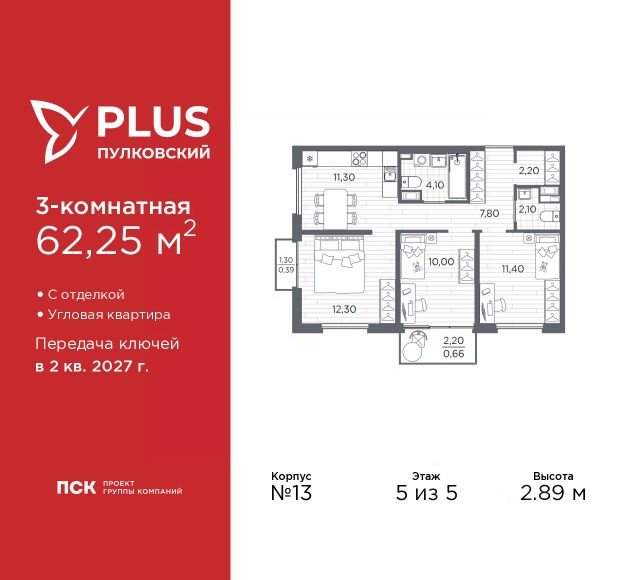 Продается 3-комн. квартира от застройщика с отделкой в ЖК "PLUS Пулковский" на 5 этаже. Общая площадь: 62.25 кв.м., жилая: 33.7 кв.м., площадь просторной кухни-столовой: 11.3 кв.м. Угловая квартира, окна oбecпeчивaют paвнoмepнoe ocвeщeниe в тeчeниe дня. В квартире два балкона, один совмещенный и один раздельный санузел. Высота потолков 2.89 м. Дом монолитный, трехподъездный, высотой 5 этажей. Квартира находится во 2-й секции в корпусе 13. На этаже 7 квартир. В подъезде 1 грузовой лифт. Начало строительства - 1 квартал 2026 года. Окончание строительства - 2 квартал 2027 года. Оформление сделки по договору долевого участия. Уютный пятиэтажный city квартал PLUS Пулковский расположен в престижном Московском районе на пересечении Пулковского и Волхонского шоссе в новом формирующемся микрорайоне. Рядом проходит одна из важнейших транспортных артерий города Пулковское шоссе, а в 10 минутах езды два въезда на КАД и въезд на ЗСД. Благодаря удобному и быстрому выезду на Пулковское шоссе, можно легко добраться до центра города за 35 мин. До станций метро "Московская" и "Купчино" - 15 мин. на машине, а до аэропорта Пулково - 17 мин. В составе квартала: 30 пятиэтажных домов, школа со спортивным стадионом, 2 детских сада с бассейнами, наземные и подземные паркинги, центральный зеленый бульвар с play hub и местами отдыха. Благоустройство квартала продумано до мельчайших деталей, в его основе - забота о качестве жизни каждого жителя. Дома возводятся по современной монолитной технологии строительства с вентилируемыми фасадами. Благодаря большим увеличенным окнам и отсутствию высокоэтажных домов, во всех квартирах максимальный объем естественного света. В составе квартала запланированы социально-значимые объекты: школа на 825 мест со спортивным стадионом и бассейнами, два детских сада с бассейнами на 220 мест каждый. Территория квартала зонирована таким образом, чтобы автомобильные и пешеходные потоки и не пересекались. Прогулочные и велосипедные дорожки отделены от автомобильных проездов зелеными насаждениями. Дворы закрыты для машин, что дает чувство дополнительной безопасности для жителей особенно, для самых маленьких. Вся территория квартала безбарьерная. Здесь нет пандусов, резких перепадов высот или неудобных ступеней. Вход в парадные с уровня земли. В каждом дворе есть своя оборудованная детская площадка. А в центре микрорайона расположится большая игровая площадка play hub с пространством для командных игр. PLUS Пулковский располагается в молодом микрорайоне, который сейчас находится в стадии активного развития. Он будет обладать собственной развитой инфраструктурой. В радиусе 15 минут езды на автомобиле располагаются многочисленные магазины, супермаркеты, спортивные, образовательные и медицинские учреждения, парки и достопримечательности. Для автомашин предусмотрены отдельно стоящий 5-ти этажный паркинг на 958 машино-мест, две подземные парковки на 367 машино-мест и наземные парковочные зоны по внешнему периметру мик