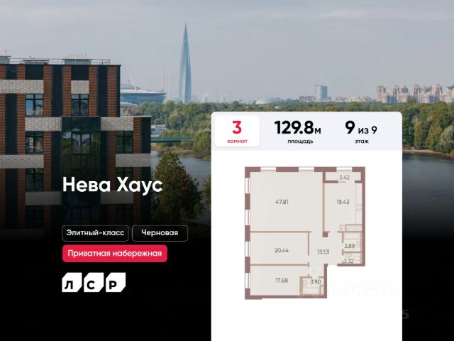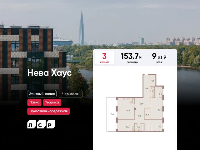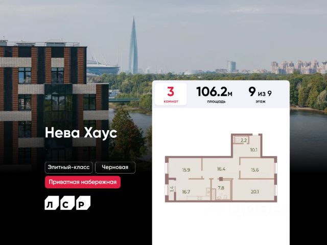 ЖК Нева Хаус - это масштабный проект элитного класса, который возведен застройщиком "ЛСР. Недвижимость - Северо-Запад" в одном из самых зеленых уголков Петроградского района. Он состоит из восьми монолитных разновысотных корпусов, в архитектурном облике которых гармонично сочетаются элементы постмодернизма, классического стиля и современных тенденций. Дизайн-проект ЖК был разработан известным петербуржским архитектором Евгением Герасимовым. Наружные стены домов оснащены износостойкими навесными фасадами и облицованы декоративным клинкерным кирпичом нескольких оттенков. Высота домов в проекте варьируется от 7 до 9 этажей. Комплекс оснащен современным оборудованием, которое обеспечивает жильцам максимальный уровень безопасности и комфорта. Покупателям предлагается разнообразный выбор планировок элитного жилья, начиная от просторных однокомнатных квартир и заканчивая пятикомнатными видовыми пентхаусами. Высота потолков в помещениях составляет 3-3.8 метра. Во всех форматах жилья предусмотрены большие кухни (от 12 кв. м), зонированные прихожие с отдельными гардеробными, увеличенные оконные проемы, ниши для установки кондиционеров и изолированные от бытовых помещений спальни. Разнообразие планировок включает варианты с просторными террасами, объединенными кухнями-гостиными, раздельными санузлами и дополнительными туалетами, эркерами и помещениями нестандартной формы. Площадь квартир - 46.87-300.79 квадратных метров. Базовая стоимость жилья не включает предчистовую или чистовую отделку помещений. В готовых квартирах установлены усиленные дизайнерские двери, оконные блоки с дерево-алюминиевыми рамами из натурального дуба и двойными стеклопакетами, современные отопительные радиаторы, оснащенные регуляторами температуры, и счетчики с функцией автоматического сбора и передачи данных. Закрытые дворы комплекса превращены в уютные прогулочные зоны для детей и взрослых. Застройщик выполнил озеленение пространства, согласно авторскому проекту ландшафтного дизайна, проложил велодорожки и тротуары, организовал закрытую набережную, установил многофункциональные спортивно-игровые городки, беседки, лавочки и стойки для велосипедов. Вся территория ЖК круглосуточно находится под охраной и видеонаблюдением. Для автотранспорта жильцов новостройки предусмотрены подземные паркинги с возможностью доступа из всех парадных на лифте. Их общая вместимость составляет 907 машиномест. Для посетителей организованы наземные стоянки по внешнему периметру территории. Жилой комплекс Нева Хаус находится в элитном районе города в окружении разнообразных объектов инфраструктуры. В пешей доступности работают гимназии, бутики, рестораны, спортивный стадион "Петровский" и филиалы ВУЗов, есть парк и яхт-клуб. Купить квартиру в жилом комплексе Нева Хаус можно в рассрочку или с привлечением ипотечного кредита, в том числе, и на льготных условиях с использованием военной ипотеки или маткапитала.