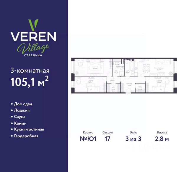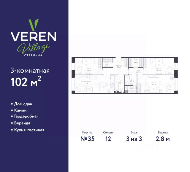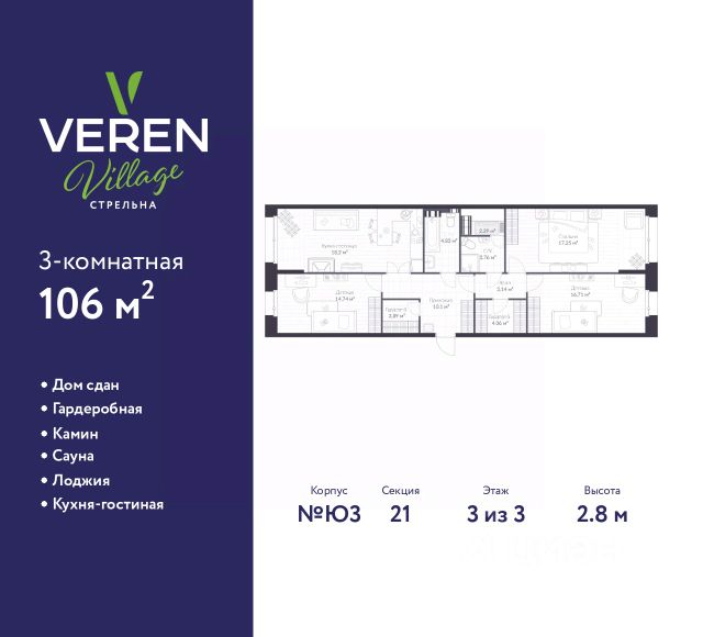 - Третья комната 17.9 м² .