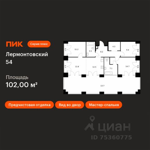 Продаётся 3-комн. квартира площадью 82,1 кв.м на 1 этаже 9 этажного дома (Корпус 1, Секция 3) проекта ПИК Лермонтовский 54. Светлый просторный подъезд на уровне земли, функциональная планировка, большие окна, предчистовая отделка. "Лермонтовский 54" находится в центре Санкт-Петербурга на набережной Обводного канала, в 5 минутах пешком от метро "Балтийская". Здесь будут квартиры с окнами в пол, высокими потолками и террасами. Жилой квартал находится в центре Санкт-Петербурга, в Адмиралтейском районе, на набережной Обводного канала. В 5 минутах пешком - станция метро "Балтийская". До Невского проспекта на автомобиле ехать 8 минут, до Московского проспекта - всего 2 минуты. Необычные фасады "Лермонтовского 54" напоминают о промышленной архитектуре, которая была популярна в Санкт-Петербурге в конце XIX и начале XX века. Материал отделки - прочный кирпич, который прослужит до 100 лет. А благодаря системе чиллер-фанкойл на фасадах не будет блоков кондиционеров - всё охлаждение происходит внутри здания. В "Лермонтовском" возводятся дома высотой от 7 до 9 этажей с небольшим количеством квартир: на этаже может быть всего две квартиры. Во дворах будут закрытые парки с детскими площадками и местами для отдыха, а на подземном этаже - паркинг с удобной навигацией. Между домами протянется пешеходный бульвар для прогулок и отдыха, для велосипедистов предусмотрены специальные дорожки и парковки. В 2024 году в "Лермонтовском 54" открылся лицей на 1000 мест. Он разместился в здании 1824 года - раньше здесь было Николаевское кавалерийское училище. Во всех квартирах будут трёхметровые потолки и окна в пол. На первых этажах откроются магазины, кафе и другие сервисы. Со стороны набережной в домах, которые признаны объектами культурного наследия, мы разместим общественные пространства. Недалеко от "Лермонтовского 54" находится Юсуповский дворец, парк Екатерингоф, на машине можно доехать до острова Новая Голландия и Мариинского театра. Рядом работают школы, детские сады, торговые центры и гипермаркеты. Артикул 786318 (Застройщик ООО "СПЕЦИАЛИЗИРОВАННЫЙ ЗАСТРОЙЩИК "АЛЬМАНДИН") [cn_sbp_1299493] 3-комнатная квартира в готовой новостройке в районе Адмиралтейский в Санкт-Петербурге.