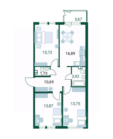 - Общая площадь 61,68м2