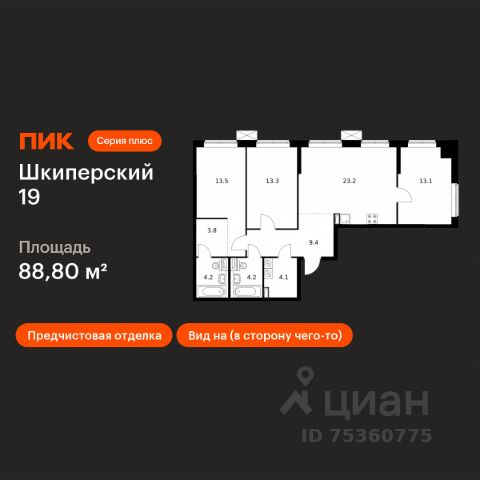 Продаётся 3-комн. квартира площадью 88,8 кв.м на 2 этаже 12 этажного дома (Корпус 1, Секция 8) проекта ПИК Шкиперский 19. Светлый просторный подъезд на уровне земли, функциональная планировка, большие окна, предчистовая отделка. Жилой квартал возводится на Васильевском острове, в пешей доступности от станции метро "Приморская" и с удобным выездом на ЗСД. Здесь будут квартиры с высокими потолками, окнами в пол и великолепным видом на Финский залив. Жилой квартал "Шкиперский 19" возводится в историческом районе Санкт-Петербурга - на Васильевском острове. Здания высотой от 8 до 12 этажей выполнены в природных оттенках, поэтому гармонично вписываются в архитектурный ландшафт Васильевского острова. На первых этажах домов откроются магазины, кафе и полезные сервисы: чтобы сходить за свежей выпечкой к завтраку, можно будет просто спуститься на лифте. Для детей из "Шкиперского 19" на территории квартала откроются школа и детский сад. Парадный вход "Шкиперского 19" - просторное и светлое гранд-лобби в стиле джапанди. В нём будут сочетаться элементы японских и скандинавских традиций дизайна. Помимо зоны ожидания с мягкой мебелью, здесь будет детская комната и гостевой санузел. В парадных предусмотрены комнаты для колясок и лапомойки для собак, тихие и быстрые лифты. Автомобиль можно будет оставить в подземном паркинге, а крупные и сезонные вещи - в индивидуальной кладовой. Доехать от квартала до Невского проспекта можно за 15 минут, до ЗСД - за 12 минут. В 20 минутах ходьбы находится станция метро "Приморская", и в 2030 году планируется открытие станции "Гавань" в 5 минутах от проекта. Проект принадлежит "Серии плюс". В "Серию плюс" входят жилые кварталы с повышенным уровнем комфорта и уникальной архитектурой. В светлых уютных лобби с дизайнерской отделкой предусмотрены колясочная и гостевой санузел. Артикул 851353 (Застройщик ООО "СЗ "Москворецкий дом") [cn_sbp_1683099] Купить 3-комнатную квартиру в готовой новостройке в округе Гавань в Санкт-Петербурге.