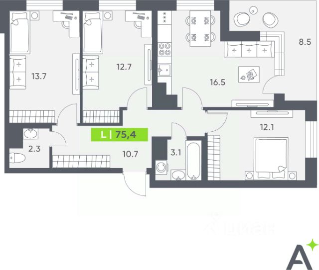 Купи квартиру в "ЖК All in 3.0" Отделка В квартире выполнена предчистовая отделка WhiteBox +Возможен дозаказ отделки в любом из 3 цветов: SAND, TERRA, GRAPHITE Отделка входит в стоимость квартиры в ДДУ ЖК Аквилон All in 3.0 в Пушкинском районе Петербурга. Это 12-этажный дом на Школьной улице на 812 квартир с отапливаемым подземным паркингом. -Малошумные лифты -Сквозные парадные -Светопрозрачные входные группы -Увеличенная высота первого этажа -Безбарьерная среда -Подземный паркинг Как и все другие проекты, ЖК Аквилон All in 3.0 мы реализуем на базе концепции Э4. Она подразумевает внедрение технологических разработок по 4 направлениям: энергоэффективности, эргономики, экологичности, экономии средств и времени жителей. Стандарты Группы Аквилон для вашей комфортной жизни Thermo-S экономия на коммунальных платежах за счет дополнительно утепленных стен, кровли и цоколя. Энергоэффективные окна с селективным покрытием и аргоновым заполнением Soundstop - дополнительная шумоизоляция внутренних перегородок и межэтажных перекрытий, шумозащитные окна, малошумные лифты Light-in - в квартирах устанавливаются широкоформатные окна, увеличены на 30%. Высота подоконников на уровне 60 см от пола. Vent-in - в каждой комнате есть клапаны индивидуальной вентиляции, которые обеспечивают приток свежего воздуха с улицы. inHOME 3.0 умный дом в каждой квартире Интеллектуальная цифровая система, которая позволит дистанционно решать бытовые вопросы, управлять квартирой и экономить на оплате коммунальных услуг. В состав inHOME входят: IP-домофон, Face key, "умные" счетчики, датчики протечки, дистанционное отключение розеток, и т.д. Жилой комплекс расположится в уже развитом районе с хорошей транспортной и социальной инфраструктурой: рядом — выезд на КАД, 15 минут до метро "Купчино" и аэропорта Пулково. #ZToFfb 3-комнатная квартира в готовой новостройке в районе Пушкинский в Санкт-Петербурге.