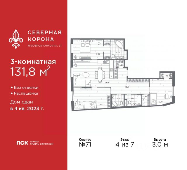 Продаётся 3-комнатная квартира в ЖК "Нева Резиденс" на 1 этаже. Общая площадь составляет 112.50 кв. м. Квартира без отделки. Жилой комплекс "Нева Резиденс" располагается по адресу Санкт-Петербург, Петроградский. Нева Резиденс - премиальный проект в центре Санкт-Петербурга, расположен в живописной локации с европейской атмосферой и собственной благоустроенной набережной. Расположение: • 1 минута пешком до Петровского пруда и сквера; • 3 мин на авто до Крестовского острова; • 8 мин на авто до станции метро "Чкаловская"; • 8 мин на авто до станции метро "Крестовский остров"; • 9 мин на авто до ЗСД; • 10 мин на авто до Стрелки В.О. и исторического центра города; • 24 мин на авто до Невского проспекта. Внутренняя территория комплекса полностью пешеходная, уютное пространство для отдыха детей и взрослых - большое внимание уделено ландшафтному дизайну, проработке пеших маршрутов, оформлению тематических зон. Местом прогулок жителей комплекса станет благоустроенная набережная, исполненная по уникальному проекту с озеленением и устройством малых архитектурных форм. Дизайн дворов предполагает создание искусственных холмов, высадку кустарников, цветников, крупномерных деревьев. Рядом расположился живописный Петровский парк с прудом. В нескольких минутах езды Петроградская сторона и исторический центр, через мост - Крестовский остров с огромной парковой зоной и аттракционами. Из подземного паркинга на лифте можно подняться на нужный этаж прямо к дверям квартиры. Преимущества: • Широкие окна, от 3м; • Фильтры тонкой очистки воды; • Система "Умный дом"; • Сквозные парадные с выходом во двор, безбарьерная среда; • 5-ти ступенчатая система очистки воды; • Повышенная звукоизоляция между квартирами; • Балконы и лоджии с теплым остеклением. Успейте приобрести квартиру на выгодных условиях! Чтобы узнать подробности, обращайтесь за консультацией по телефону. Купить 3-комнатную квартиру в ипотеку в новостройке рядом с метро Чкаловская.