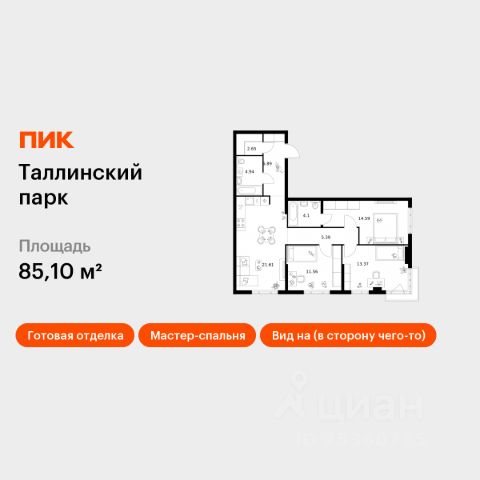 Продаётся 3-комн. квартира площадью 85,01 кв.м на 6 этаже 12 этажного дома (Корпус 4.2, Секция 1) проекта ПИК Таллинский парк. Светлый просторный подъезд на уровне земли, функциональная планировка, большие окна, без отделки. "Таллинский парк" - проект в Ленинградской области, в районе Новоселье. До станции метро "Проспект Ветеранов" - 15 минут на автомобиле, а до КАД можно доехать всего за 4 минуты. "Таллинский парк" включает 16 жилых домов, детский сад и школу. В проекте появится центральный сквер с обильным озеленением, а через весь квартал протянутся широкие пешеходные бульвары. В зелёных дворах-парках будут оборудованы современные детские и спортивные площадки, обустроены места для отдыха. На первых этажах разместятся магазины, кафе и другие сервисы. Проектом предусмотрены персональные кладовые помещения - это доступный, экономичный и удобный способ хранения сезонных и крупногабаритных вещей. Освободите свою квартиру для полноценной жизни. Район Новоселье активно развивается в городском формате: здесь уже работают детские сады, школа и магазины. Для любителей зимних видов спорта открыта круглосуточная ледовая арена Ice Rink. За покупками и развлечениями также можно быстро доехать: 10 минут - и вы в Аутлете Fashion House Таллинское, гипермаркетах Лента, Леруа Мерлен и Окей. В 10 минутах на автомобиле находится Финский залив, на берегу которого расположились объекты культурного наследия. Рядом - Константиновский парк с отреставрированным дворцом, а чуть дальше расположена усадьба Знаменка. В великолепном Петергофе вы будете уже через 20 минут. Артикул 1026332 (Застройщик ООО "СПЕЦИАЛИЗИРОВАННЫЙ ЗА СТРОЙЩИК "СТРОЙ-ЭКСПЕРТ ") [cn_sbp_1807019]