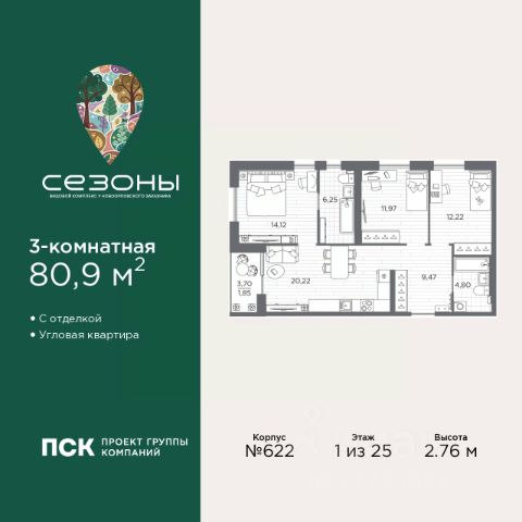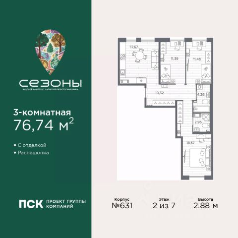 3-комн. квартира от застройщика с предчистовой отделкой в ЖК "Сезоны" на 5 этаже. Общая площадь: 82.53 кв.м., жилая: 38.18 кв.м., площадь просторной кухни-столовой: 22.14 кв.м. Квартира - распашонка, без проходных комнат, окна выходят на paзные стороны дома. В квартире один балкон, один совмещенный и один раздельный санузел. Высота потолков 2.88 м. Дом монолитный, многоподъездный, высотой 7 этажей. Квартира находится в 1-й секции в корпусе 611. На этаже 4 квартиры. В подъезде 1 грузовой лифт. Начало строительства - 4 квартал 2025 года. Окончание строительства - 2 квартал 2028 года. Оформление сделки по договору долевого участия. Видовой жилой комплекс "Сезоны" от ГК ПСК возводится в одном из самых востребованных и престижных районов Санкт-Петербурга - Приморском, рядом с Суздальским и Выборгским шоссе. Такое расположение обеспечивает удобный выезд в разные части города, сочетая городской комфорт с близостью к природе. Всего в 50 метрах находится природный заказник "Новоорловский" и речка Каменка, а в пешей доступности - Суздальские озёра. Приморский район отличается развитой социальной и транспортной инфраструктурой. Здесь расположены крупные торговые и деловые центры, современные спортивные объекты, медицинские учреждения, магазины, кафе и рестораны. Комплекс включает четыре корпуса, ввод которых в эксплуатацию запланирован на 2028 год. Проект и прилегающий микрорайон разработаны в соответствии с концепцией "15-минутного города", при которой вся необходимая инфраструктура находится в шаговой доступности. В ближайшем окружении - две школы, пять детских садов, магазины, кафе, салоны красоты, банковские отделения и пункты выдачи заказов. Также предусмотрены два четырёхъярусных паркинга с лифтами на 288 машиномест. О застройщике ГК ПСК - один из крупнейших девелоперов Санкт-Петербурга с более чем 18-летней историей. Компания реализует проекты во всех сегментах недвижимости - от премиальных жилых комплексов до масштабных кварталов комфорт-класса и апарт-отелей. По данным портала ЕРЗ.РФ, ПСК входит в ТОП-3 крупнейших застройщиков Санкт-Петербурга по объёму текущего строительства. Портфель компании превышает 3 млн кв. м жилой и коммерческой недвижимости. Все объекты сдаются строго в срок и отличаются высоким уровнем архитектурных и инженерных решений. #ZtOOWd Продается 3-комнатная квартира в ипотеку в новостройке в районе Приморский в Санкт-Петербурге.