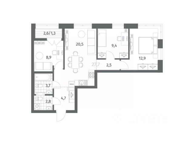 Продается 3-комн. квартира на 4-м этаже в строящемся проекте комфорт-класса GloraX Новоселье. Общая площадь лота составляет 58,27 кв. м, из которых 30,69 кв. м отведено под жилую и 13,94 кв. м под кухонную зону. Номер квартиры - 134 Преимущества квартиры: - Квартиры комфорт-класса с чистовой отделкой в двух цветовых гаммах на выбор - Зеленый район, 5 мин. до Гореловсого лесопарки, 10 мин. до Шунгеровского заказника - 7 мин. до КАД, 16 мин. до ЗСД - 864 м/м на открытой стоянке - Благоустроенный собственный прогулочный бульвар - Закрытые дворы с видеонаблюдением - Детские площадки с геопласткой и бизиборадми - Сад и школа в шаговой доступности - Спортивные площадки и вело-дорожки - Коммерческие помещения на 1 этажах GloraX Новоселье — новый проект комфорт-класса на юго-западной границе Санкт-Петербурга и Ленинградской области. Близость к зеленым зонам Гореловского лесопарка и природного Шунгеровского заказника, а также пешеходный многофункциональный бульвар в центре квартала — идеальное место для тех, кто ценит природу и тишину, при этом не готов отказываться от благ современной инфраструктуры. Застройка осуществляется в рамках единой концепции, предусматривающей не только создание комфортного жилья, но и формирование собственной внутренней благоустроенной среды. Территория каждого двора разделена на зоны отдыха, досуга и игровые площадки с учетом возраста и потребностей детей и взрослых создает неповторимую атмосферу, заряжающую энергией на новые свершения. Это проект, в котором спокойно во всех отношениях. Живите на природе, но с комфортом мегаполиса. Проведите теплые дни в Гореловском лесопарке. Познакомьте детей с историей в Стрельне, Петергофе или Красном селе. Они разположены в 30 минутах от проекта. До ж/д станции "Сергиево" 11 минут на автомобиле, до метро Проспект Ветеранов 20 минут, КАД 7 минут, ЗСД 16 минут. В шаговой доступности остановка общественного транспорта. Рядом с проектом будут построены школа и детский сад. Здесь все создано для максимального комфорта каждого жителя. Приватное пространство внутреннего двора с беседками для работы и отдыха, зеленый двор с уютным многоуровневым освещением, детскими эко-площадками и спортивными workout создает неповторимую атмосферу, заряжающую энергией на новые свершения. Цена указана при 100% оплате или стандартной ипотеке. Узнайте подробности в Отделе продаж. Продается 3-комнатная квартира в новостройке в городском поселении Аннинское Ломоносовского района.