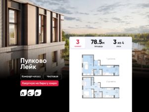 Продается 3-комнатная квартира в ЖК "Пулково Лейк" на 3 этаже. Общая площадь составляет 66.30 кв. м. Квартира с чистовой отделкой. Жилой комплекс "Пулково Лейк" располагается по адресу Санкт-Петербург, Московский. Пулково Лейк - проект малоэтажной застройки на берегу озера на границе Московского и Пушкинского районов. Дома высотой всего 4 этажа, квартиры от уютных студий до трехкомнатных квартир для большой семьи. Широчайший выбор планировок, включая квартиры с мастер-спальнями, патио, каминами, саунами, двухуровневые квартиры. Школа, детские сады, парк на берегу озера и выезды на Пулковское и Петербургское шоссе. Расположение: • 5 мин на авто до Аэропорта Пулково; • 10 мин на авто до станций метро "Московская; • 10-15 мин на авто до городов Пушкина, Павловска и Гатчины; • 20 мин на авто до центра Санкт-Петербурга. Квартиры в проекте сдаются с предчистовой и чистовой отделкой Соmfоrt Stоnе и Соmfоrt Wооd по современным стандартам - Вы можете сами выбрать отделку, подходящую именно Вам. Дома оборудованы самыми современными инженерными системами и "Умным домом". В рамках проекта будет построена современная школа на 925 мест и 2 детских сада на 160 и 240 мест, выезды на Пулковское и Петербургское шоссе, а также храм рядом со сквером "Пулковский рубеж". Общественное пространство вдоль берега озера превратится во всесезонный парк, в котором найдется место для любых активностей от пробежек, катания на САПах и велосипедах до отдыха в шезлонгах и любования закатом солнца. Зимой будет работать каток, проложен лыжный маршрут, предусмотрено место для новогодней елки и горок для детей. Для Ваших питомцев - площадка для выгула собак. Преимущества: • Высота потолков от 2,6 до 4,5 м; • Уникальные планировки; • Парк на берегу озера; • Система "Умный дом"; • Дворы без машин; • Колясочная в парадной; • Видеонаблюдение в холлах, на первом этаже, в лифтах и в паркингах. Успейте приобрести квартиру на выгодных условиях! Чтобы узнать подробности, обращайтесь за консультацией по телефону. Продам 3-комнатную квартиру с отделкой от застройщика в районе Пушкинский в Санкт-Петербурге.