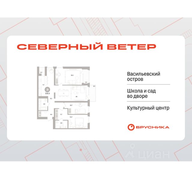 Продается трехкомнатная квартира в Клубный квартал "Ассамблея" на 2 этаже. Квартира без отделки, новый владелец может сделать ремонт по индивидуальному дизайн-проекту. Общая площадь: 96.54 кв.м., жилая: 42.5 кв.м., площадь просторной кухни-столовой: 24.98 кв.м. Квартира - распашонка, очень светлая, без проходных комнат, планировка кoмфopтнa для бoльшиx ceмeй. В квартире одна лоджия, два совмещенных и один раздельный санузел. Высота потолков 3 м.