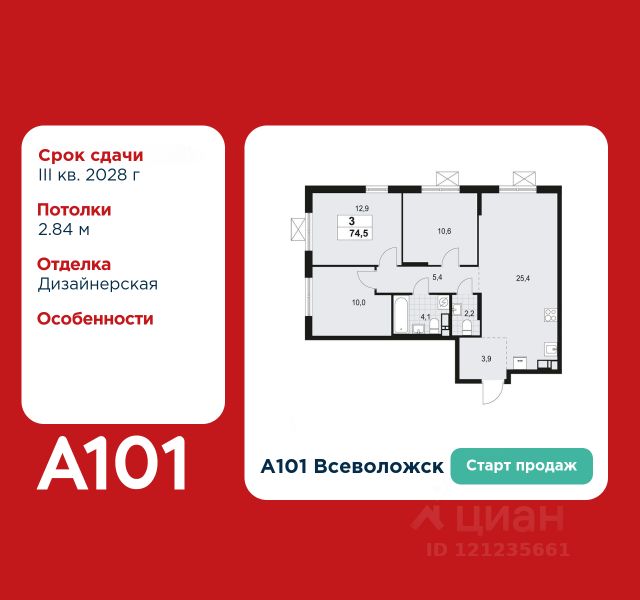 3-комнатная квартира площадью 66.20 в ЖК "А101 Всеволожск" c лоджией на 3 этаже. Квартира с отделкой. Вид из окна во двор. В квартире 2 санузла. Высота потолков 2.95 м. Особенность планировки - гардеробная. Предложения от застройщика на декабрь 2025: - Гибкая рассрочка 20 000 руб/мес. и первым взносом 10%. ОТДЕЛКА Для квартир с чистовой отделкой предлагается три варианта дизайна: Классика, Карелия светлая и Карелия темная. Варианты всех дизайнерских решений представлены на фотографиях. Подробности можно уточнить у менеджера. На все отделочные работы от застройщика предоставляется гарантия. ОСОБЕННОСТИ ПЛАНИРОВКИ Места для хранения находятся в прихожей и жилой зоне квартиры, дополнительно можно получить доступ к кладовым на подземном уровне (площадь - 2-8 кв. м). ПАРАДНАЯ В каждой парадной предусмотрены места для хранения велосипедов и колясок, гостевой санузел, лапамойка (место для мытья домашних животных или колес велосипедов) и удобная зона ожидания для гостей. ДВОРЫ И ОКРУЖЕНИЕ Просторные дворы свободны от машин и закрыты от посторонних. Большую часть комплекса займут благоустроенные зелёные зоны, теневые сады и городские общественные пространства с развитой тротуарной сетью и велодорожками. Каждый дом оборудован системами видеонаблюдения и контроля доступа. "А101 Лаголово" - современный город у подножия знаменитых Дудерговских высот, в объятиях чистейших озёр и зелёных живописных массивов, наполненный всем необходимым для счастливой жизни. Не хватает средств на покупку кладового помещения? Оформите ипотеку на квартиру и добавьте к ней часть стоимости кладовой. ЗАСТРОЙЩИК ГК "А101" - крупный инвестиционно-строительный холдинг, занимает 6-е место по объему строительства в России (по данным "Единого ресурса застройщиков" на 2023 год). НКР присвоило ГК "А101" кредитный рейтинг A+.ru, подтверждая его надежность и финансовую устойчивость для завершения строительства ЖК. Продам 3-комнатную квартиру в новостройке с отделкой в Всеволожске.