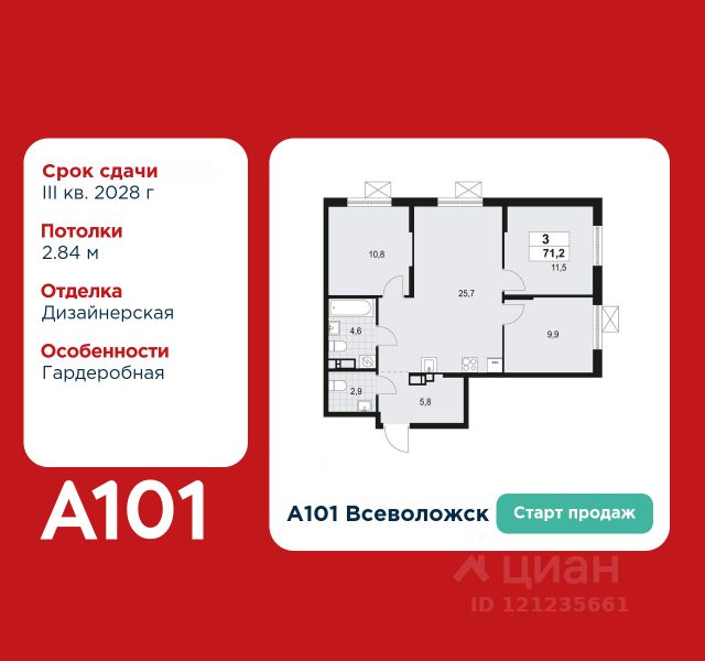 В продаже квартира площадью 76.65 кв. м с отделкой на 13 этаже 16 этажного дома. Квартира находится в 4835 корпусе: Жилой комплекс "Ленский" - место, где встречаются природа и городская среда, а умиротворение загородной жизни сочетается с комфортом. Проект располагается на северо-востоке Санкт-Петербурга, в Южном микрорайоне Всеволожска, в 16 км от КАД, с удобным выездом на Колтужское шоссе и Дорогу Жизни. В его состав входят два 18-этажных корпуса с видами на Колтушские высоты, сервисы повседневной инфраструктуры, собственный приватный двор, просторный паркинг для жителей и гостей. Девелопер проекта - федеральный застройщик ГК "Развитие". Транспортная доступность На автомобиле: • 30 мин до станции метро "ул. Дыбенко" • 35 мин до центра Санкт-Петербурга Архитектура Архитектурный облик отличается современным дизайном. Панорамные окна с большой площадью остекления наполняют квартиры светом, актуальная финская технология Peikko защищает квартиры от промерзания даже в северном климате. Дома прочные, долговечные, их конструкция гарантирует тёплый микроклимат зимой, прохладу летом и отличную звукоизоляцию. Планировочные решения Функциональные планировки отличаются простотой и эргономичностью, пространство эффективно используется даже на небольшой площади. К кухне примыкает просторная лоджия с панорамным остеклением, во всех двух- и трехкомнатных квартирах - по два санузла. Все квартиры сдаются с отделкой white box, которая позволяет существенно сократить стоимость и сроки ремонта. По желанию доступны варианты чистовой отделки под ключ: "комфорт" и "бизнес" с использованием современных материалов. Благоустройство - приватный двор без машин; - всесезонное озеленение; - спортивный корт для футбола и баскетбола; - детские площадки с мягким покрытием; - площадка для настольного тенниса; - скамейки и беседки для отдыха по всему периметру; - прогулочные и велосипедные дорожки в тени деревьев; - сквозные парадные с большими окнами; - просторная входная группа на уровне земли; - колясочные помещения; - торговая галерея в шаговой доступности. Окружение - 5 парков: заповедник "Колтушские высоты", парк "Софиевка", "Румболовский", "Кенша", Державинский и Алексеевский парки. За 5-10 минут можно добраться транспортом до Песчанки и Петропавловского парка. Ковалевский лесопарк выделяется прекрасными экотропами, зонами для пикников и велодорожками, а Ждановские озера - благоустроенными пляжами; - рядом Колтушинский фреш-маркет с фермерскими продуктами и крупный ТЦ "Юбилейный", где работают более 70 магазинов, кинотеатр и фуд-корт; - 10 детских садов, начальная и средняя школы, центры дополнительного образования, творческие секции; - в ближайшей доступности фитнес-центры, бассейн, теннисный клуб и даже центр верховой езды; - культурные и знаковые места: Музей-усадьба "Приютино", музей "Дом Авиаторов", мемориальный комплекс "Дорога Жизни", многочисленные пешеходные маршруты. Продам 3-комнатную квартиру в новостройке с отделкой в Всеволожске.