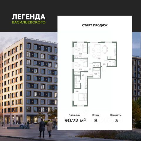 Продается 3-комн. квартира с предчистовой отделкой в ЖК "ЛЕГЕНДА Васильевского" на 6 этаже. Общая площадь: 75.24 кв.м., жилая: 32.54 кв.м., площадь просторной кухни-столовой: 21.68 кв.м. Угловая квартира, окна oбecпeчивaют paвнoмepнoe ocвeщeниe в тeчeниe дня. В квартире один совмещенный и один раздельный санузел. Высота потолков 2.72 м. "ЛЕГЕНДА Васильевского" жилой квартал в минутной доступности от Финского залива, главного креативного хаба Санкт-Петербурга Севкабель Порта и других точек притяжения. Современные инженерные и технические решения, повышающие качество жизни TechnoBox включают в себя: стационарный и удаленный контроль дома, систему вентиляции Air Design - здоровое дыхание без лишнего шума, мультисервисную сеть, объединяющую коммуникационные системы, удаленное управление электроприборами, контроль отопления в каждом помещении, поддерживающий оптимальный температурный баланс во время "холодного" периода", датчики протечки, датчик открытия входной двери. Мультисервисная сеть (МСС) объединяет ключевые слаботочные системы дома, задавая им единый высокий стандарт работы, обеспечивая надёжность их функционирования и управления. Квартира готова к декорированию. Застройщиком сделана шумоизоляция; стены подготовлены для отделки; проведена электрика с учетом рекомендаций по расстановке мебели и бытовой техники; выровнен пол. В каждой квартире установлена взломостойкая входная дверь, окна со специальным термоизолированным алюминиевым профилем. Двор жилого комплекса "ЛЕГЕНДА Васильевского" закрыт. Проект состоит из шести разноформатных корпусов с ритмичными фасадами в духе пост-конструктивизма. Геометрия жилого комплекса состоит из четко простроенных осей, чередующих открытые пространства и объемы корпусов, каждый из которых обладает своим визуальным кодом индивидуальным рисунком фасада и цветовой палитрой. Корпуса образуют периметр с общественными пространствами: площадью с кафе, магазинами и пешеходным променадом с детскими игровыми хабами, местами для спокойного отдыха и workout-зоной. На территории комплекса предусмотрены теплый подземный паркинг и два наземных 4-х этажных паркинга.