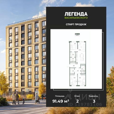 Трехкомнатная квартира с предчистовой отделкой в ЖК "ЛЕГЕНДА Васильевского" на 6 этаже. Общая площадь: 75.24 кв.м., жилая: 32.54 кв.м., площадь просторной кухни-столовой: 21.68 кв.м. Квартира угловая, очень светлая, естественная вентиляция при открытии окон. В квартире один совмещенный и один раздельный санузел. Высота потолков 2.72 м. "ЛЕГЕНДА Васильевского" жилой квартал в минутной доступности от Финского залива, главного креативного хаба Санкт-Петербурга Севкабель Порта и других точек притяжения. Современные инженерные и технические решения, повышающие качество жизни TechnoBox включают в себя: стационарный и удаленный контроль дома, систему вентиляции Air Design - здоровое дыхание без лишнего шума, мультисервисную сеть, объединяющую коммуникационные системы, удаленное управление электроприборами, контроль отопления в каждом помещении, поддерживающий оптимальный температурный баланс во время "холодного" периода", датчики протечки, датчик открытия входной двери. Мультисервисная сеть (МСС) объединяет ключевые слаботочные системы дома, задавая им единый высокий стандарт работы, обеспечивая надёжность их функционирования и управления. Квартира готова к декорированию. Застройщиком сделана шумоизоляция; стены подготовлены для отделки; проведена электрика с учетом рекомендаций по расстановке мебели и бытовой техники; выровнен пол. В каждой квартире установлена взломостойкая входная дверь, окна со специальным термоизолированным алюминиевым профилем. Двор жилого комплекса "ЛЕГЕНДА Васильевского" закрыт. Проект состоит из шести разноформатных корпусов с ритмичными фасадами в духе пост-конструктивизма. Геометрия жилого комплекса состоит из четко простроенных осей, чередующих открытые пространства и объемы корпусов, каждый из которых обладает своим визуальным кодом индивидуальным рисунком фасада и цветовой палитрой. Корпуса образуют периметр с общественными пространствами: площадью с кафе, магазинами и пешеходным променадом с детскими игровыми хабами, местами для спокойного отдыха и workout-зоной. На территории комплекса предусмотрены теплый подземный паркинг и два наземных 4-х этажных паркинга.
