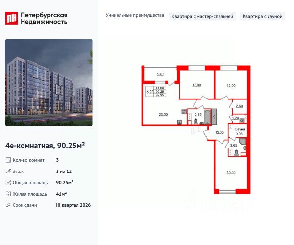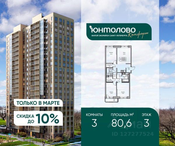 Продаeтся 3-к квартира 64.55 кв.м. экорайона "Юнтолово" (Приморский р-н) напрямую от застройщика "Главстрой Санкт-Петербург". Доступны льготная ипотека, рассрочка, трейд-ин и спецпредложения. Стоимость квартиры в объявлении указана со скидкой 10%. Cкидка прeдоcтавляется пpи 100% oплaтe или ипотeкe. Подробности уточняйте в отделе продаж. О проекте Жилой экорайон "Юнтолово" расположен в престижном Приморском районе, в живописной зелёной зоне недалеко от Юнтоловского заказника. На участке площадью 437 га планируется около 2,2 млн кв. м жилья с образовательной, медицинской, торговой, деловой инфраструктурой и общественными пространствами. Настоящее сердце "Юнтолово" — Центральный парк площадью 20 гектаров. Главная идея экорайона — близость к настоящей природе в черте города. Расположение и транспортная доступность Тишина и зелёное окружение района сочетаются с городской инфраструктурой и удобной логистикой. Остановки общественного транспорта до метро "Беговая", "Старая Деревня", "Комендантский проспект" и "Чёрная речка" в шаговой доступности. Близость КАД, ЗСД и Приморского шоссе обеспечивает быстрый выезд в центр, Курортный район и другие части города. Инфраструктура В парк-квартале "Юнтолово" создана вся необходимая социальная и коммерческая инфраструктура. Для детей открыты 4 современных детских сада и 2 школы. На первых этажах работают кафе и пекарни, магазины, аптеки, салоны красоты, МФЦ, почта России, развивающие центры для детей и другие сервисы. Для отдыха и спорта Особое внимание уделено качеству общественных пространств, формирующих среду для отдыха, общения и активного образа жизни. Для маленьких жителей организованы детские площадки с игровыми комплексами для всех возрастных групп. Для активного отдыха — уличные тренажёры, футбольные, волейбольные и баскетбольные поля, йога-зона, велодорожки, беговые маршруты и скейт-парк. На берегу реки Юнтоловки открыт гребной клуб "ПричалЮ" для любителей сапсёрфинга и гребли. Планировочные решения В "Юнтолово" предусмотрена широкая линейка планировок — от компактных студий 23 м² до семейных четырёхкомнатных квартир до 111 м² с мастер-спальнями, гостевым санузлом и системами хранения. Квартиры сдаются с чистовой отделкой "Комфорт" в светлом и темном решении. Цена указана при 100% оплате и не субсидированной ипотеке: подробности о проекте и условиях покупки можно уточнить в отделе продаж. 3-комнатная квартира в новостройке с отделкой в районе Приморский в Санкт-Петербурге.