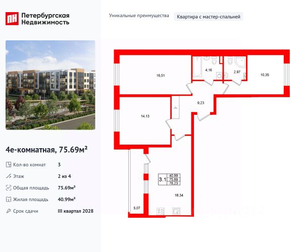 Цена действует при 100% оплате и на определенные ипотечные программы. Подробности — в отделе продаж по телефону. Продается 3-комнатная квартира в ЖК "Пулково Лейк" на 3 этаже. Общая площадь составляет 66.10 кв. м. Квартира с чистовой отделкой. Жилой комплекс "Пулково Лейк" располагается по адресу Санкт-Петербург, Московский. Пулково Лейк - проект малоэтажной застройки на берегу озера на границе Московского и Пушкинского районов. Дома высотой всего 4 этажа, квартиры от уютных студий до трехкомнатных квартир для большой семьи. Широчайший выбор планировок, включая квартиры с мастер-спальнями, патио, каминами, саунами, двухуровневые квартиры. Школа, детские сады, парк на берегу озера и выезды на Пулковское и Петербургское шоссе. Расположение: • 5 мин на авто до Аэропорта Пулково; • 10 мин на авто до станций метро "Московская; • 10-15 мин на авто до городов Пушкина, Павловска и Гатчины; • 20 мин на авто до центра Санкт-Петербурга. Квартиры в проекте сдаются с предчистовой и чистовой отделкой Соmfоrt Stоnе и Соmfоrt Wооd по современным стандартам - Вы можете сами выбрать отделку, подходящую именно Вам. Дома оборудованы самыми современными инженерными системами и "Умным домом". В рамках проекта будет построена современная школа на 925 мест и 2 детских сада на 160 и 240 мест, выезды на Пулковское и Петербургское шоссе, а также храм рядом со сквером "Пулковский рубеж". Общественное пространство вдоль берега озера превратится во всесезонный парк, в котором найдется место для любых активностей от пробежек, катания на САПах и велосипедах до отдыха в шезлонгах и любования закатом солнца. Зимой будет работать каток, проложен лыжный маршрут, предусмотрено место для новогодней елки и горок для детей. Для Ваших питомцев - площадка для выгула собак. Преимущества: • Высота потолков от 2,6 до 4,5 м; • Уникальные планировки; • Парк на берегу озера; • Система "Умный дом"; • Дворы без машин; • Колясочная в парадной; • Видеонаблюдение в холлах, на первом этаже, в лифтах и в паркингах. Успейте приобрести квартиру на выгодных условиях! Чтобы узнать подробности, обращайтесь за консультацией по телефону.