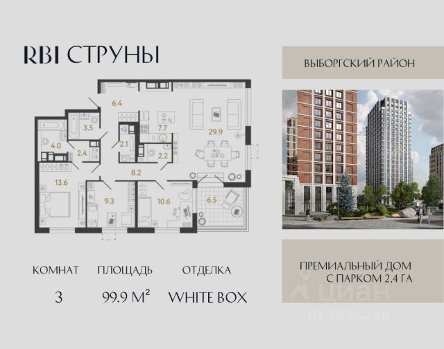 Дом, который изменит Выборгский район. "Струны" — музыка, застывшая в архитектуре. Новый проект высокого класса строится у метро "Проспект Просвещения" в Выборгском районе. Рядом Суздальские озёра, Шуваловский парк и парк Сосновка. Близость к хвойным лесам на севере города и расположение на улице Шостаковича определили лейтмотив проекта — симфония карельской природы. На территории дома появятся сразу два живописных парка с карельской природой, один из которых будет доступен только для резидентов. Приватные пространства двух очередей соединит пешеходный мост, а вдоль дома к общественному парку, который строится для города в рамках проекта, будет проложен пешеходный бульвар с кафе и магазинами. На прилегающей территории будет построен муниципальный детский сад и врачебные кабинеты. Проект воплощает лучшие тенденции премиальной недвижимости: планировки с мастер-спальнями, просторными гостиными, выделенными гардеробными и видовыми террасами. Прямо из паркинга можно подняться в квартиру на лифте, а дети могут выбрать для игры во дворе любую из четырёх тематических площадок — по мотивам произведений Шостаковича. Также на приватную территорию дома можно попасть через парадные входные группы с панорамными окнами на лифте. Фишка проекта — музыкальная студия, где можно помузицировать на рояле, организовать вечеринку с караоке или поработать в оборудованной зоне коворкинга. "Струны" — симфония жизни на улице Шостаковича. Продается 3-комнатная квартира в новостройке с отделкой в районе Выборгский в Санкт-Петербурге.