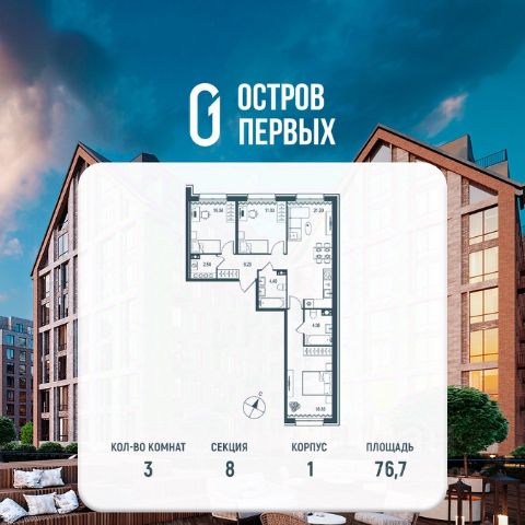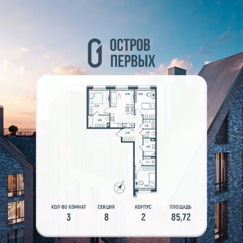 Остров первых новый премиальный квартал в центре Петербурга, на Матисовом острове. Всего в нескольких минутах находятся легендарная Новая Голландия, величественный Мариинский театр и вся культурная палитра Петербурга. Архитектура, разработанная Евгением Подгорновым и его студией INTERCOLUMNIUM, отражает характер города. Фасады облицованы кирпичом терракотового и серого оттенков. Все материалы отвечают высокому качеству строительства. Компания Fizika Development бережно восстановит исторический объект, воплощающий величие императорской России. Краснокирпичное производственное здание с водонапорной башней завода шотландского инженера Чарльза Берда станет лицом клубного квартала "Остров первых" и новой точкой притяжения для горожан. Приватная территория, сочетающая камерную атмосферу и комфорт, была создана ведущими урбанистами города. Проектом предусмотрен одноуровневый подземный паркинг под жилыми корпусами и дворовым пространством, а также гостевые парковочные места по периметру квартала. Особое внимание уделено безопасности: закрытые дворы, охраняемая территория, круглосуточное видеонаблюдение и контроль доступа 24/7. В премиальном квартале "Остров первых" представлены уникальные планировочные решения: от уютных студий до просторных трехкомнатных квартир с потолками до 5,1 метров. 3-комнатная квартира в новостройке в районе Адмиралтейский в Санкт-Петербурге.