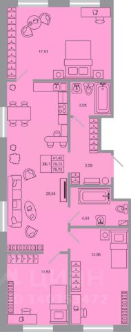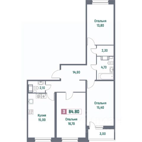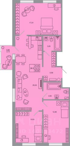 3 - комнатная квартира на 5 этаже общей площадью 73,67 м² в жилом комплексе Арт Парк от застройщика ГК Алгоритм.