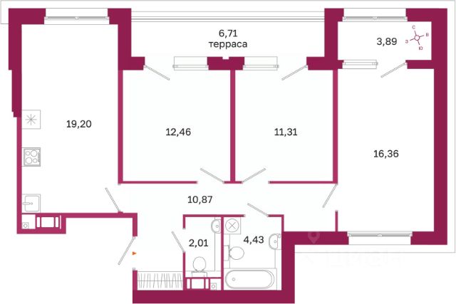 - два санузла (4,1 м² и 1,3 м²) удобное решение для семейного проживания,