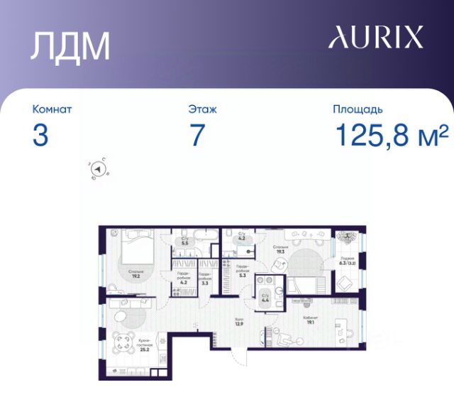 Продается 3-к квартира без отделки в ЖК "ЛДМ". Общая площадь квартиры — 125.8 кв. м, этаж 7 из 9. Тип дома — монолитный. Цена указана при 100% оплате.