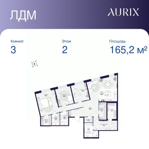 Продается 3-к квартира без отделки в ЖК "ЛДМ". Общая площадь квартиры — 165.2 кв. м, этаж 2 из 8. Тип дома — монолитный. Цена указана при 100% оплате.