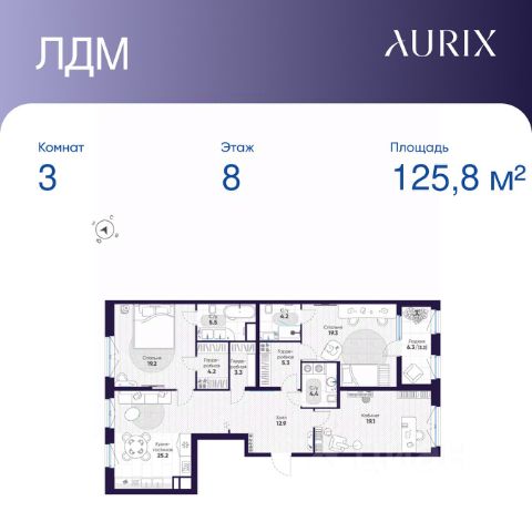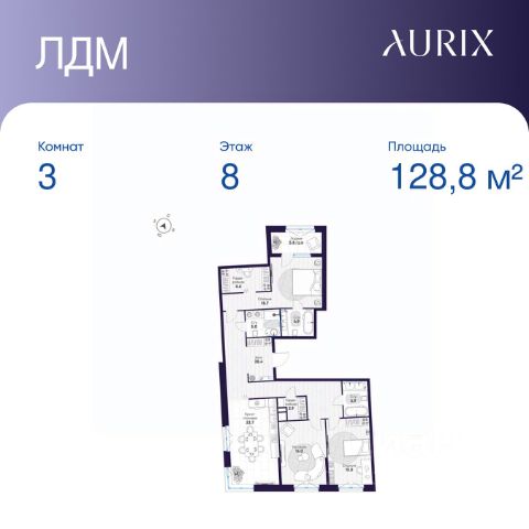 Продается 3-к квартира без отделки в ЖК "ЛДМ". Общая площадь квартиры — 128.8 кв. м, этаж 8 из 8. Тип дома — монолитный. Цена указана при 100% оплате.