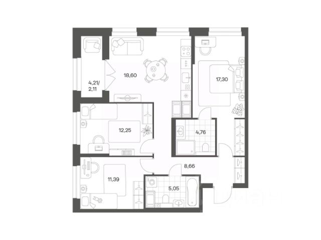 Продается квартира площадью 79.28 м² на 5 этаже 1 секции в Речной квартал от компании ГК "ТРЕСТ". Площадь кухни 18.24 м². Семейный жилой комплекс комфорт-класса "Речной квартал" от Группы компаний "ТРЕСТ" расположен в Невском районе Петербурга на пересечении Октябрьской набережной и Русановской улицы. Первая очередь квартала состоит из трёх корпусов, расположенных лучеобразно, чтобы максимально использовать естественное освещение и обеспечить видовые точки на локацию. Проект выделяется современными архитектурными решениями и дизайном. Концепция развития и благоустройства придомовой территории разделена на зоны отдыха, досуга и игровые площадки с учетом возраста и потребностей детей и взрослых. Квартал рассчитан на семейных покупателей, поэтому здесь нет студий: только одно-, двух- и трёхкомнатные квартиры. В проекте представлены квартиры с кухнями-гостиными, мастер-спальнями, гардеробными и кладовыми. "Речной квартал" - современный жилой комплекс с разнообразным благоустройством придомовой территории, просторными европланировками, закрытой охраняемой территорией и подземными паркингами. На территории комплекса уже функционирует детский сад на 110 мест. Также в квартале будет построена общеобразовательная школа на 475 мест с бассейном и стадионом. Открытие школы запланировано на 2029 год. Квартиры в ЖК "Речной квартал" можно приобрести с готовой отделкой от застройщика. Для покупателей квартир предусмотрено два варианта чистовой отделки "Ваниль" и "Шоколад". Чистовая отделка в квартирах ЖК "Речной квартал" предполагает монтаж натяжных потолков, укладку ламината, оклейку стен обоями под покраску, установку светильников и межкомнатных дверей. При отделке новой квартиры применяются качественные, натуральные и экологичные материалы, монтируется стильная импортная сантехника европейских брендов. В объявлении указана стоимость квартиры при 100% оплате. При других формах оплаты - базовую стоимость квартиры уточняейте на официальном сайте компании или у менеджера отдела продаж. Застройщик АО "Специализированный застройщик "Строительный трест".