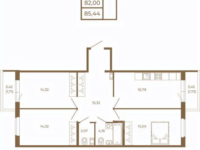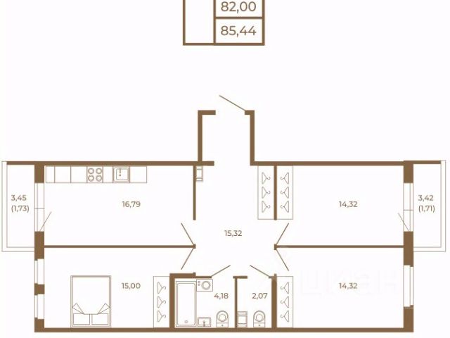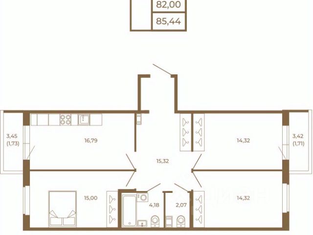 Двухкомнатная квартира, обладает просторными комнатами, кухней-гостиной, двумя санузлами. Большое количество окон и большая площадь комнат при грамотном зонировании позволят Вам организовать отдельные помещения для каждого члена семьи.