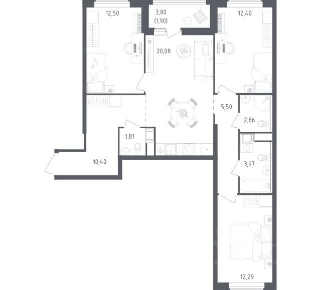 В квартире с готовой отделкой мы поклеили обои под покраску, постелили полы в комнатах и санузлах, выполнили отделку стен. Установили сантехнику и межкомнатные двери, провели электрику. Это лучшее соотношение цены, качества и затраченного времени. Осталось только выбрать место для обеденного стола и удобного дивана.