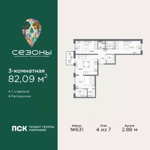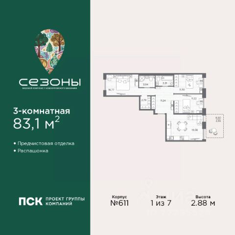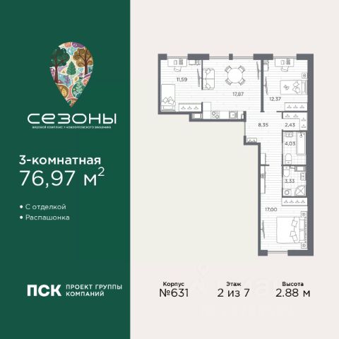 Продается трехкомнатная квартира с отделкой в ЖК "Сезоны" на 7 этаже. Общая площадь: 91.45 кв.м., жилая: 37.75 кв.м., площадь просторной кухни-столовой: 22.92 кв.м. Квартира угловая, идеально подойдет любителям тишины и панорамных видов. В квартире два балкона и одна лоджия, два совмещенных и один раздельный санузел. Терраса представляет собой роскошную зону отдыха для проведение вечеров в кругу семьи и друзей или организация вечеринок. Высота потолков 2.88 м. Дом монолитный, многоподъездный, высотой 7 этажей. Квартира находится в 1-й секции в корпусе 631. На этаже 5 квартир. В подъезде 1 грузовой лифт. Начало строительства - 4 квартал 2025 года. Окончание строительства - 2 квартал 2028 года. Оформление сделки по договору долевого участия. Видовой жилой комплекс "Сезоны" от ГК ПСК возводится в одном из самых востребованных и престижных районов Санкт-Петербурга - Приморском, рядом с Суздальским и Выборгским шоссе. Такое расположение обеспечивает удобный выезд в разные части города, сочетая городской комфорт с близостью к природе. Всего в 50 метрах находится природный заказник "Новоорловский" и речка Каменка, а в пешей доступности - Суздальские озёра. Приморский район отличается развитой социальной и транспортной инфраструктурой. Здесь расположены крупные торговые и деловые центры, современные спортивные объекты, медицинские учреждения, магазины, кафе и рестораны. Комплекс включает четыре корпуса, ввод которых в эксплуатацию запланирован на 2028 год. Проект и прилегающий микрорайон разработаны в соответствии с концепцией "15-минутного города", при которой вся необходимая инфраструктура находится в шаговой доступности. В ближайшем окружении - две школы, пять детских садов, магазины, кафе, салоны красоты, банковские отделения и пункты выдачи заказов. Также предусмотрены два четырёхъярусных паркинга с лифтами на 288 машиномест. О застройщике ГК ПСК - один из крупнейших девелоперов Санкт-Петербурга с более чем 18-летней историей. Компания реализует проекты во всех сегментах недвижимости - от премиальных жилых комплексов до масштабных кварталов комфорт-класса и апарт-отелей. По данным портала ЕРЗ.РФ, ПСК входит в ТОП-3 крупнейших застройщиков Санкт-Петербурга по объёму текущего строительства. Портфель компании превышает 3 млн кв. м жилой и коммерческой недвижимости. Все объекты сдаются строго в срок и отличаются высоким уровнем архитектурных и инженерных решений.