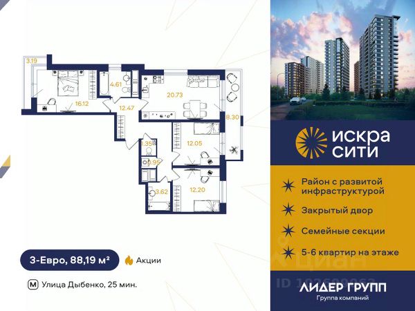 Продаётся светлая, просторная квартира (европланировка) по адресу: Санкт-Петербург, Невский район, Дальневосточный проспект, дом 12, корпус 2.