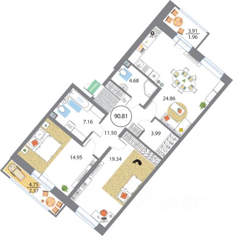 Modum будет находиться в Приморском районе. С одной стороны, близость Юнтоловского заказника обеспечит его жителям свежий воздух и тишину, а с другой - удобное расположение позволит быстро добраться в любую точку Санкт-Петербурга. 3-комнатная квартира в новостройке в округе Юнтолово в Санкт-Петербурге.