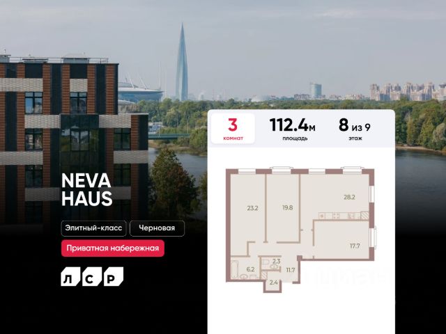 Продаётся 3-комнатная квартира в ЖК "NEVA HAUS" на 2 этаже. Общая площадь составляет 121.00 кв. м. Квартира без отделки. Жилой комплекс "NEVA HAUS" располагается по адресу Санкт-Петербург, Петроградский. NEVA HAUS - элитный жилой комплекс в самой зеленой части Петровского острова, в точке слияния двух рек, напротив Крестовского острова. У жителей появится благоустроенная набережная с пирсом и павильон с необходимыми сервисами и услугами. Потолки до 3,8 м, увеличенные деревянно-алюминиевые окна, современные технические решения, закрытая территория и внутренняя инфраструктура - важные слагаемые качественной жизни в NEVA HAUS. Расположение: • 4 мин на авто до Крестовского острова; • 5 мин на авто до Приморского парка Победы; • 6 мин на авто до станции метро "Крестовский остров"; • 18 мин на авто до ЗСД; • 20 мин на авто до Стрелки В.О. и исторического центра города. NEVA HAUS стал первым элитным жилым комплексом в Санкт-Петербурге, официально получившим статус энергоэффективного, водоэффективного и экологичного объекта по системе GREEN ZOOM. Для удобства жителей, квартира будет подключена к IP-домофонии, на гостевой парковке предусмотрены зарядки для электромобилей. В квартире устроена ниша для размещения кондиционеров, индивидуальные каналы вентиляции, отверстия на фасаде для современных приточно-вытяжных систем, пятиступенчатая очистка воды, коллекторная разводка труб отопления и дерево-алюминиевые окна соответствуют высокому классу жилья. Преимущества: • Высокие потолки, до 3.8м; • Повышенная звукоизоляция между квартирами; • Закрытая охраняемая территория, видеонаблюдение; • Благоустроенная приватная набережная; • Система "Умный дом"; • 5-ти ступенчатая система очистки воды; Успейте приобрести квартиру на выгодных условиях! Чтобы узнать подробности, обращайтесь за консультацией по телефону. Продам 3-комнатную квартиру в новостройке на проспекте Петровский в Санкт-Петербурге.