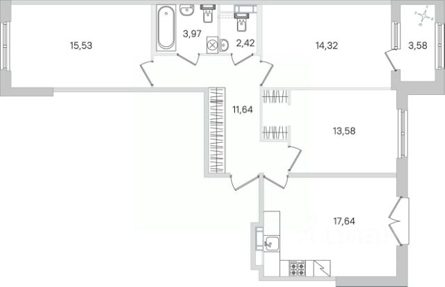 В продаже квартира 138,84 кв.м, расположена на последнем этаже 3 этажного корпуса. Квартиру отличают высокие потолки от 2,9 до 3,8 м, а также совершенно необычные окна высотой 3,7 м. Такая геометрия крыши и окон наполняет квартиру воздухом и светом, а также дает возможность проектирования 2ого уровня для игровой детской зоны или библиотеки. Планировкой предусмотрены кухня-гостиная площадью 28,22 кв.м, просторная детская с выделенной гардеробной, мастер-спальня площадью 21,81 кв.м с собственной гардеробной и гостевая спальня площаью 17,19 кв.м. В холле место для системы хранения, гостевой с/у, постирочная.