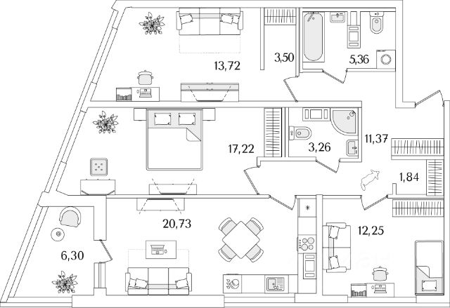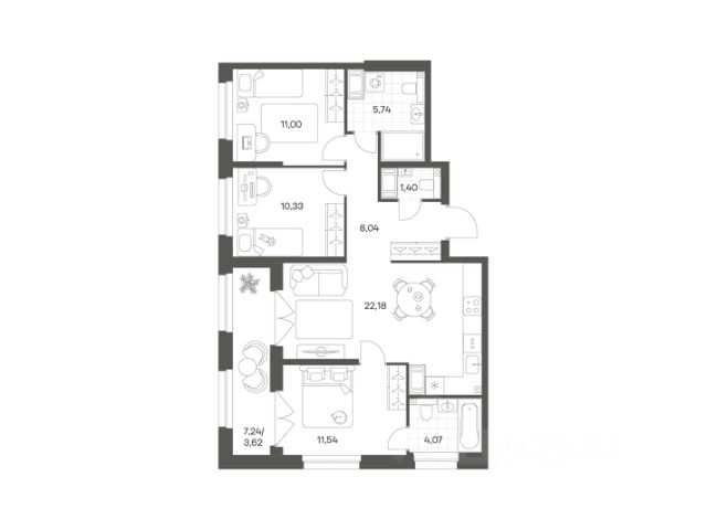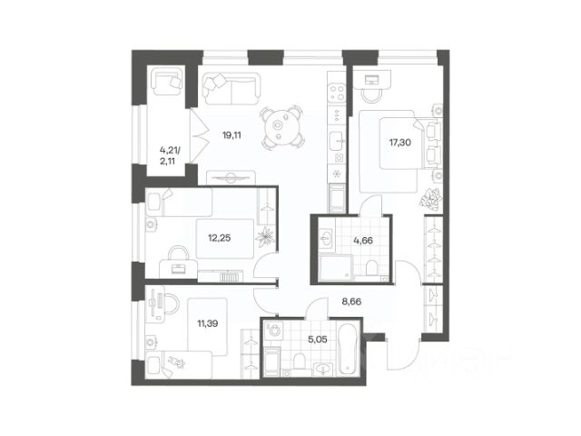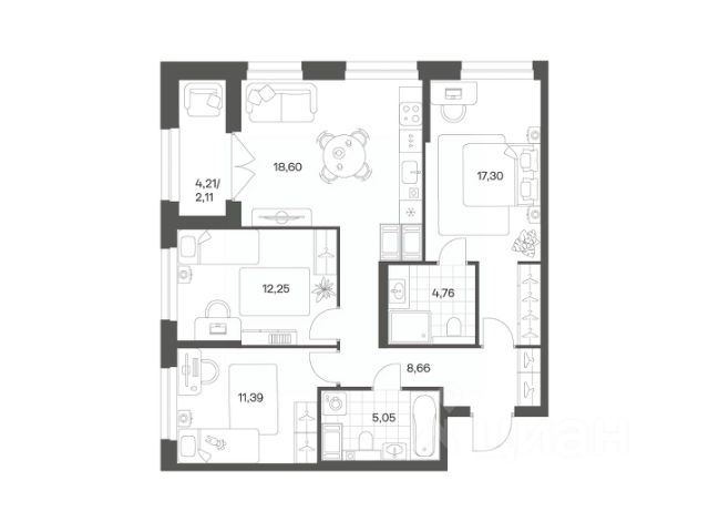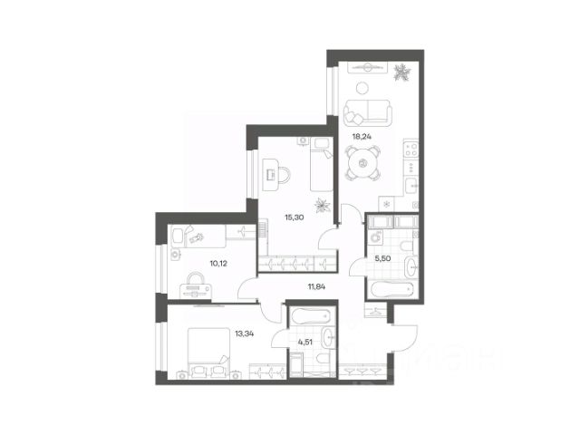 Продается квартира площадью 79.28 м² на 3 этаже 1 секции в Речной квартал от компании ГК "ТРЕСТ". Площадь кухни 18.24 м². Семейный жилой комплекс комфорт-класса "Речной квартал" от Группы компаний "ТРЕСТ" расположен в Невском районе Петербурга на пересечении Октябрьской набережной и Русановской улицы. Первая очередь квартала состоит из трёх корпусов, расположенных лучеобразно, чтобы максимально использовать естественное освещение и обеспечить видовые точки на локацию. Проект выделяется современными архитектурными решениями и дизайном. Концепция развития и благоустройства придомовой территории разделена на зоны отдыха, досуга и игровые площадки с учетом возраста и потребностей детей и взрослых. Квартал рассчитан на семейных покупателей, поэтому здесь нет студий: только одно-, двух- и трёхкомнатные квартиры. В проекте представлены квартиры с кухнями-гостиными, мастер-спальнями, гардеробными и кладовыми. "Речной квартал" - современный жилой комплекс с разнообразным благоустройством придомовой территории, просторными европланировками, закрытой охраняемой территорией и подземными паркингами. На территории комплекса уже функционирует детский сад на 110 мест. Также в квартале будет построена общеобразовательная школа на 475 мест с бассейном и стадионом. Открытие школы запланировано на 2029 год. Квартиры в ЖК "Речной квартал" можно приобрести с готовой отделкой от застройщика. Для покупателей квартир предусмотрено два варианта чистовой отделки "Ваниль" и "Шоколад". Чистовая отделка в квартирах ЖК "Речной квартал" предполагает монтаж натяжных потолков, укладку ламината, оклейку стен обоями под покраску, установку светильников и межкомнатных дверей. При отделке новой квартиры применяются качественные, натуральные и экологичные материалы, монтируется стильная импортная сантехника европейских брендов. В объявлении указана стоимость квартиры при 100% оплате. При других формах оплаты - базовую стоимость квартиры уточняейте на официальном сайте компании или у менеджера отдела продаж. Застройщик АО "Специализированный застройщик "Строительный трест".