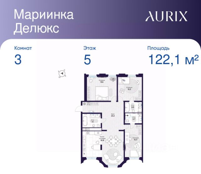 Продается 3-к квартира без отделки в ЖК "Мариинка Делюкс". Общая площадь квартиры — 122.1 кв. м, этаж 5 из 9. Тип дома — монолитный. Цена указана при 100% оплате.