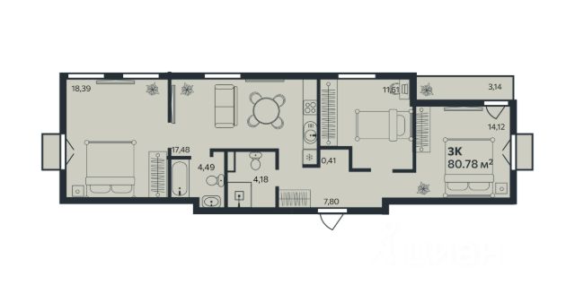 Продаётся 3-комнатная квартира в сданном доме (Рябиновая, 30), срок сдачи: III-кв. 2024, общей площадью 65.5 кв.м., на 1 этаже. Расположение, транспортная доступность