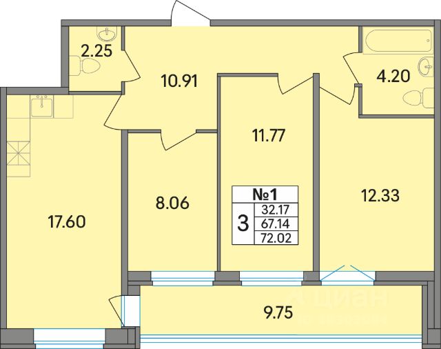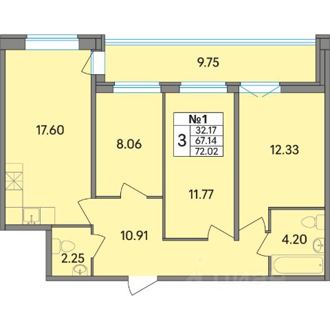Продаётся 3-комнатная квартира в строящемся доме (Корпус 2), срок сдачи: IV-кв. 2026, общей площадью 73.88 кв.м., на 1 этаже. Жилой комплекс "Рождественский квартал" представляет собой проект квартальной застройки, расположенный во Всеволожском районе Ленобласти, в дер. Скотное. Это комплексно сформированная по современным стандартам застройка с центральными коммуникациями и собственной развитой инфраструктурой. Жилой комплекс состоит из 8-ми монолитно-кирпичных домов, возведенных по авторскому проекту. Высота каждого здания составляет 8 этажей. Несомненным плюсом ЖК является и то, что рядом с ним расположено множество достопримечательностей. Так, на машине можно быстро доехать до Вартемягского, Сарженского или Кавголовского озер, до Шуваловского или Ново-Кавголовского лесопарков. А любители животных смогут посещать конный клуб "Гермес", пони-ферму "Идальго" и знаменитый Токсовский зубровник. В ЖК "Рождественский квартал" компания предлагает более расширенный спектр услуг по отделки будущего жилья. Покупатели могут остановиться на чистовой или же выбрать предчистовой отделку. Также есть возможность заказать ремонт по индивидуальному проекту. Квартирография проекта включает студии, одно-, двух-, трех- и четырехкомнатные квартиры с разнообразными планировочными решениями. Инфраструктура района - От ЖК до станции метро "Девяткино" или "Парнас" можно добраться на общественном или личном транспорте за 15-25 минут. - Через деревню Скотное проходит автобус, следующий до Токсово, и маршрутка, идущая до станции метро "Проспект Просвещения". - Расстояние от ЖК до кольцевой автодороги - 8 км. - Есть организованный выезд на трассу Р-33. Преимущества - Экологически чистый район - Квартиры с отделкой - Собственная инфраструктура: школа, сад, магазины - На 1 этаже многофункциональные коммерческие помещения - Благоустроенная территория: площадки для взрослых и детей - Большой выбор планировок - Панорамное остекление