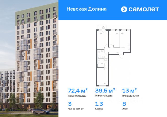 Продается уютная, семейная 3-комнатная квартира от застройщика в жилом комплексе "Город звезд" в новом городе на правом берегу Невы. До метро можно добраться на транспорте всего за 13 минут. Мастер-спальня с собственной ванной комнатой. Самое приватное пространство в вашей квартире. Уникальная, функциональная европланировка, большая кухня-гостиная 19.76 м², просторная прихожая 11.94 м². Общая площадь квартиры - 86.98 м², жилая 46.4 м², высота потолка 2.75 м. Квартира продается с отделкой "NORD LINE SILVER". Что особенного в ЖК "Город звезд"? • Инновационный Лицей Setl с оригинальной архитектурной концепцией и уникальной образовательной средой • Невский лесопарк под окнами - всегда свежий воздух и полноценный отдых на природе • Четыре тематические площади отдыха с разнообразным благоустройством • Аллея Звёзд - променад протяженностью 5 км с ландшафтным озеленением, зонами отдыха и велодорожкой • Выход на набережную реки Утки, где можно порыбачить или взять напрокат лодку • Единая входная группа с ресепшен и подземный паркинг
