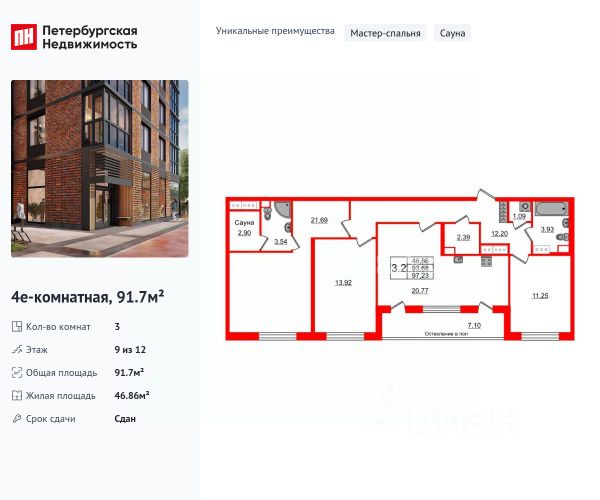 Продается 3-комн. квартира от застройщика с отделкой в ЖК "ORO by Akvilon" на 3 этаже. Общая площадь: 78.59 кв.м., жилая: 35.39 кв.м., площадь просторной кухни-столовой: 17.89 кв.м. Комнаты изолированные, все окна выходят на одну сторону. В квартире одна лоджия, один совмещенный и один раздельный санузел. Высота потолков 2.85 м. Квартира находится в корпусе 1. Дом монолитный, одноподъездный, высотой 17 этажей. На этаже 12 квартир. В подъезде 1 пассажирский и 1 грузовой лифт. Окончание строительства - 4 квартал 2027 года. Оформление сделки по договору долевого участия. В шаговой доступности от дома имеется станция метро (расстояние по прямой) "Звёздная" (800 м), также недалеко от этого корпуса находятся станции метро: "Купчино", "Московская", "Ленинский Проспект", "Дунайская". ЖК "ORO by Akvilon" - старт продаж жилого комплекса бизнес-класса в Московском районе. -Панорамные окна в пол во всех квартирах -Алюминиевые оконные профили с многокамерными стеклопакетами -Французские балконы с золотой окантовкой -Высота этажа 3,15 метра -Увеличенные дверные проемы - 2,3 метров высотой -Выделенные места для кондиционеров на каждом этаже -Фреоновые трубки заведенные в квартиру от мест установки внешних блоков кондиционеров -Дизайнерская отделка гранд-лобби с биокамином и золотыми элементами -Импортные бесшумные лифты с дизайнерской отделкой и увеличенной высотой кабины Отделка квартир Премиальная отделка в двух цветовых решениях: Beigestone и Greystone. Дозаказ для любой квартиры Стандарты Группы Аквилон для вашей комфортной жизни Thermo-S экономия на коммунальных платежах за счет дополнительно утепленных стен, кровли и цоколя. Энергоэффективные окна с селективным покрытием и аргоновым заполнением Soundstop - дополнительная шумоизоляция внутренних перегородок и межэтажных перекрытий, шумозащитные окна, малошумные лифты Light-in - в квартирах комфортный микроклимат. Многокамерные стеклопакеты сохраняют тепло зимой и отсеивают излишки излучения солнечного света летом, сохраняя прохладу в помещении. Vent-in - в каждой комнате есть клапаны индивидуальной вентиляции, которые обеспечивают приток свежего воздуха с улицы. inHOME умный дом в каждой квартире Интеллектуальная цифровая система, которая позволит дистанционно решать бытовые вопросы, управлять квартирой и экономить на оплате коммунальных услуг. В состав inHOME входят: IP-домофон, Face key, "умные" счетчики, датчики протечки, дистанционное отключение розеток, и т.д. Подземный паркинг -Лифты в каждой секции со спуском в паркинг -Отделка лифтовых холлов паркинга в стиле Гранд лобби + дизайнерская навигация самого паркинга -Возможность установки электрозарядки в паркинге или на территории ЖК -GSM усилитель в паркинге Двор -Ландшафтный дизайн с геопластикой и цветочными аркадами -Сад цветущих сезонов -Разноуровневая подсветка -Детские площадки нового поколения -Живой зелёный забор -Закрытый двор без машин Локация -7 мин. до м. Звездная -10 мин. до м. Московская Продам 3-комнатную квартиру с отделкой рядом с метро Московская.