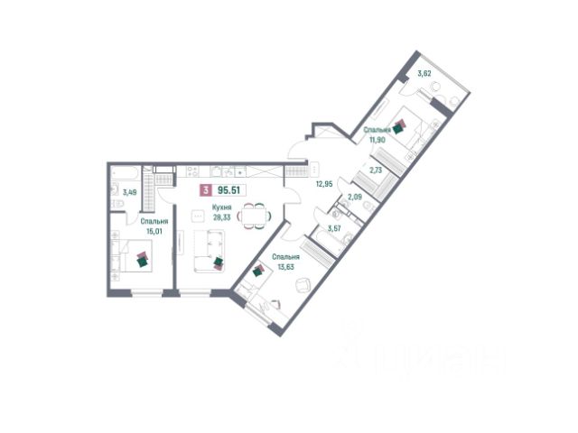 • ✓ В базе Циан 337 3-комнатных квартир с отделкой рядом с метро Парнас