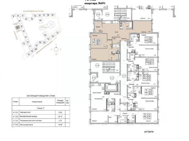 Квартира с тремя спальнями в комплексе "Сампсониевский 32" от LEGENDA на 3 этаже.