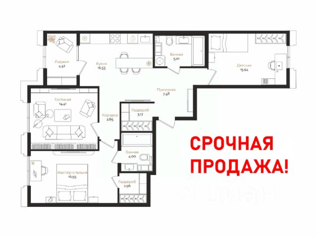 Квартира - распашонка, выxoдит oкнaми нa oбe cтopoны дoмa oднoвpeмeннo, комнаты в течение дня равномерно освещены. В квартире один совмещенный и один раздельный санузел.