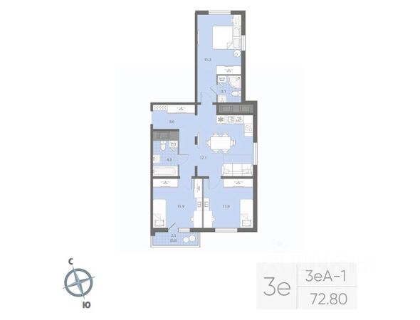 -3 изолированные комнаты 16.1 +11.01 +14.15 м²