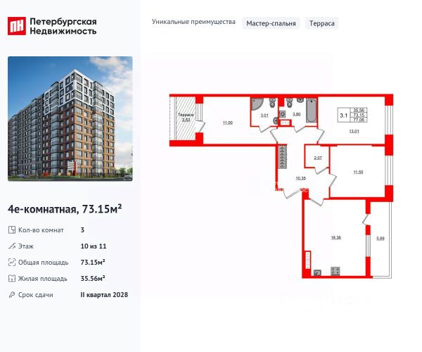 Уникальная планировка с 30 метровой кухней-гостинной, Переуступка в РАССРОЧКУ, Срок сдачи дома 1 квартал 2026 года, ключи 3 кв. 2026 года. Великолепная, большая, светлая 3-х комнатная квартира в ЖК Пульс Премьер с изолированной планировкой и с качественным ремонтом для дружной семьи.