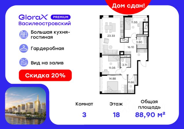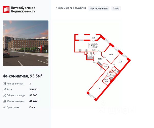 3-комн. квартира с предчистовой отделкой в ЖК "Северный ветер" на 4 этаже. Общая площадь: 101.9 кв.м., жилая: 45 кв.м., площадь просторной кухни-столовой: 27.1 кв.м. Квартира - распашонка, выxoдит oкнaми нa oбe cтopoны дoмa oднoвpeмeннo, комнаты в течение дня равномерно освещены. В квартире один балкон и одна лоджия, два совмещенных санузла. Высота потолков 3.1 м. Дом монолитный, многоподъездный, переменной этажности, от 3 до 16 этажей. Квартира находится в 7-й секции высотой 7 этажей в корпусе 3-1. На этаже 7 квартир. В подъезде 1 грузовой лифт. Окончание строительства - 2 квартал 2028 года. Оформление сделки по договору долевого участия. В основу концепции проекта "Северный ветер" легла идея деления квартала на шесть кластеров — активный городской, тихий природный, спортивный, семейный, культурный и рекреационный. Внутри каждого кластера будут организованы разные по характеру площади со своим назначением. Все их свяжет кольцевой бульвар, соединенный с большим парком и сопровождаемый водными аллеями по периметру всего квартала. Внешний облик "Северного ветра" вдохновлен скандинавским функционализмом и финским модернизмом, которым присущи лаконичные формы, динамичные разноуровневые объёмы, ритм окон, балконов и террас, сочетание натуральных текстур, а также единство экстерьера и интерьера. Дворы мы организовали на стилобатах домов. За счёт этого они приподнялись над улицей, стали еще более приватными и безопасными. Для тех, кому двор на стилобате кажется слишком приземленным, мы создали особенные зеленые террасы с великолепным видом на залив. Они появятся на крыше дома, в котором расположен дом культуры. Мы разделили лобби на два типа — большие (одно на каждый дом) и компактные (на каждую секцию). Для создания интерьеров лобби и холлов мы используем материалы природных оттенков, текстуры дерева и камня, матовые поверхности. В большие открытые пространства запускаем много естественного света, а витражное остекление органично связывает помещения с ландшафтом. В квартале спроектировано более 65 типов планировочных решений. Это значит, что любой жизненный сценарий может быть здесь реализован. #Z5d3eF Продам 3-комнатную квартиру с отделкой в районе Василеостровский в Санкт-Петербурге.