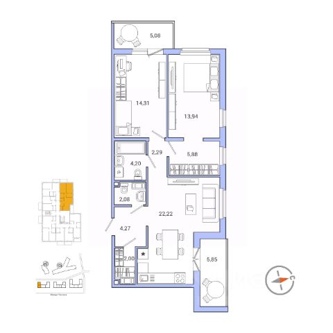 Просторные комнаты с возможностью разделения на зоны, встроенные гардеробные, евро-планировки и кухни-гостиные до 20 м2.