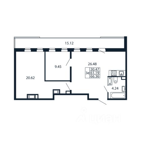 Площадь комнат17,29 кв. м.,17,17 кв. м.Вам остается решить, где у вас будет гостиная и спальня, а может быть и детская.