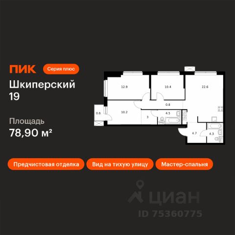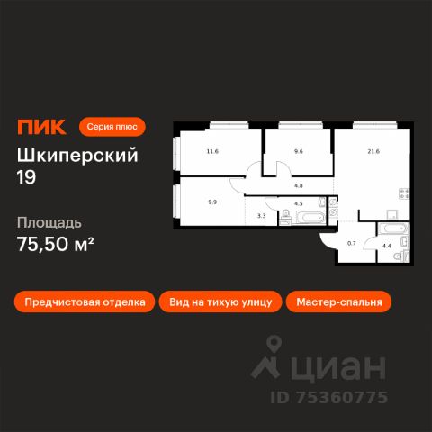 Продаётся 3-комн. квартира площадью 75,5 кв.м на 1 этаже 12 этажного дома (Корпус 1, Секция 4) проекта ПИК Шкиперский 19. Светлый просторный подъезд на уровне земли, функциональная планировка, большие окна, предчистовая отделка. Жилой квартал возводится на Васильевском острове, в пешей доступности от станции метро "Приморская" и с удобным выездом на ЗСД. Здесь будут квартиры с высокими потолками, окнами в пол и великолепным видом на Финский залив. Жилой квартал "Шкиперский 19" возводится в историческом районе Санкт-Петербурга - на Васильевском острове. Здания высотой от 8 до 12 этажей выполнены в природных оттенках, поэтому гармонично вписываются в архитектурный ландшафт Васильевского острова. На первых этажах домов откроются магазины, кафе и полезные сервисы: чтобы сходить за свежей выпечкой к завтраку, можно будет просто спуститься на лифте. Для детей из "Шкиперского 19" на территории квартала откроются школа и детский сад. Парадный вход "Шкиперского 19" - просторное и светлое гранд-лобби в стиле джапанди. В нём будут сочетаться элементы японских и скандинавских традиций дизайна. Помимо зоны ожидания с мягкой мебелью, здесь будет детская комната и гостевой санузел. В парадных предусмотрены комнаты для колясок и лапомойки для собак, тихие и быстрые лифты. Автомобиль можно будет оставить в подземном паркинге, а крупные и сезонные вещи - в индивидуальной кладовой. Доехать от квартала до Невского проспекта можно за 15 минут, до ЗСД - за 12 минут. В 20 минутах ходьбы находится станция метро "Приморская", и в 2030 году планируется открытие станции "Гавань" в 5 минутах от проекта. Проект принадлежит "Серии плюс". В "Серию плюс" входят жилые кварталы с повышенным уровнем комфорта и уникальной архитектурой. В светлых уютных лобби с дизайнерской отделкой предусмотрены колясочная и гостевой санузел. Артикул 850784 (Застройщик ООО "СЗ "Москворецкий дом") [cn_sbp_1326193] Продам 3-комнатную квартиру первичка на проезде Галерный в Санкт-Петербурге.